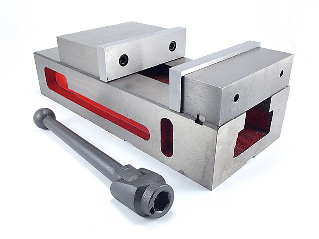 - Imadło posiada rowki i kanałki, aby zamocować je stabilnie na stole obróbczym za pomocą elementów mocujących.