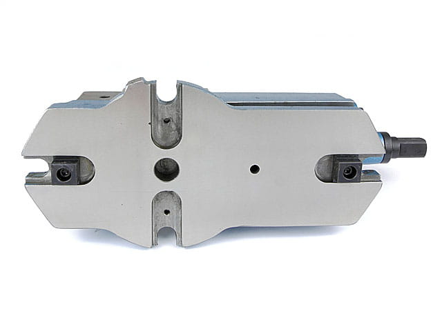 - Konstrukcja imadła z pryzmowym prowadzeniem szczęki ruchomej, umożliwia wykasowanie luzów powstających na prowadnicach w trakcie eksploatacji