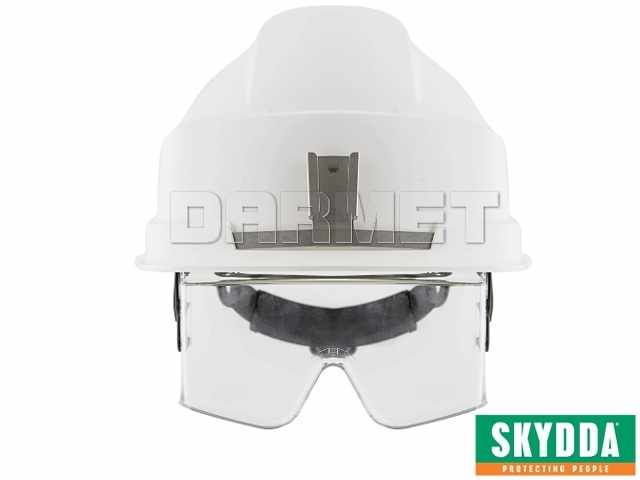 Kask ochronny IRIS II z wbudowanym wizjerem i uchwytem na kartę, biały, rozmiar 53-63 - SKYDDA (035600402)