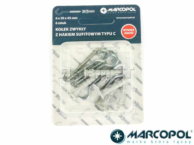 Kołki zwykłe z hakiem sufitowym typu C 6 x 30 x 45 mm, 6 szt. - MARCOPOL (QB0113)