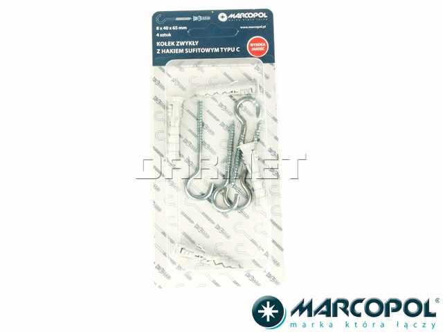 Kołki zwykłe z hakiem sufitowym typu C 8 x 40 x 65 mm, 4 szt. - MARCOPOL (QB0114)