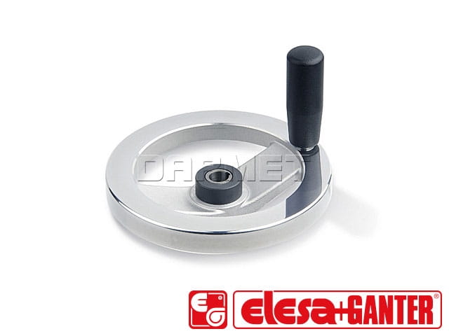 Koło ręczne aluminiowe z rękojeścią, pokrętło blokujące ze sprzęgłem GN 322.5 łożysko igiełkowe - ELESA+GANTER