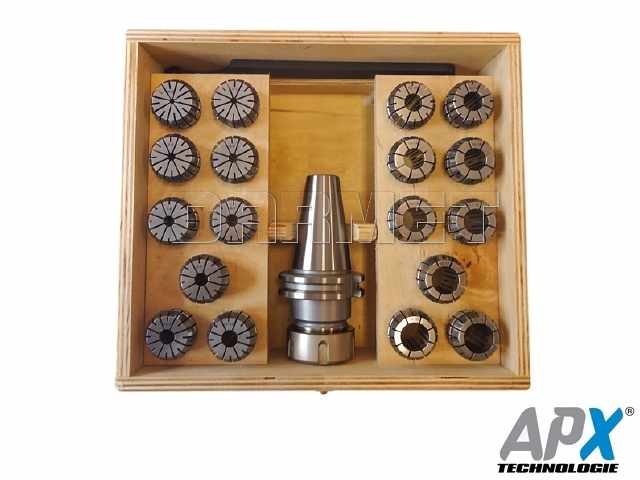 - Komplet tulei zaciskowych ER z trzpieniem w kasecie drewnianej.