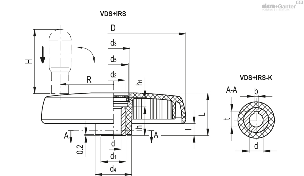 Koło ręczne pełne 72770-R VDS.150+IRS-A8 - ELESA+GANTER