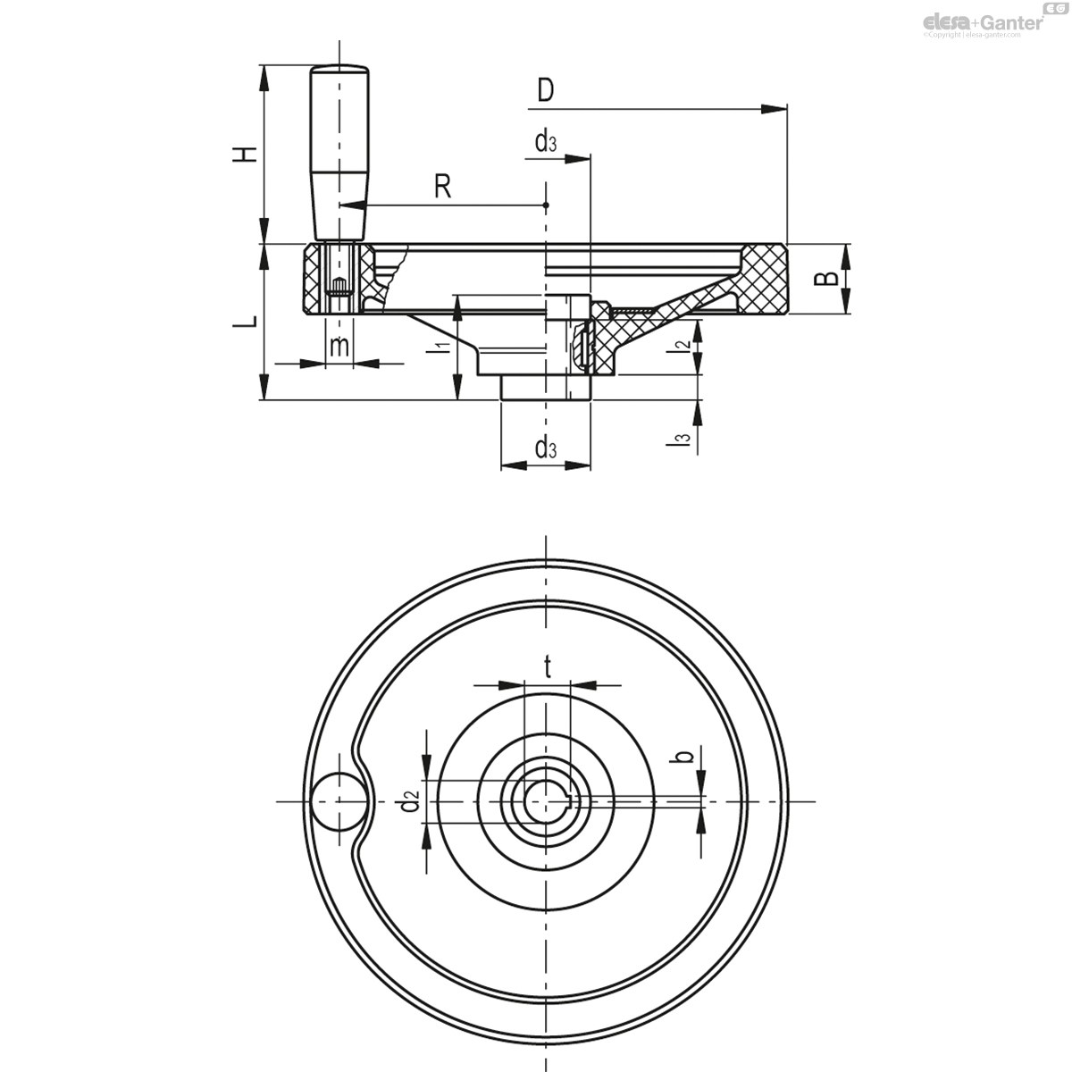 Koło ręczne pełne 73738 VDN.150 FP+I+ST14 - ELESA+GANTER