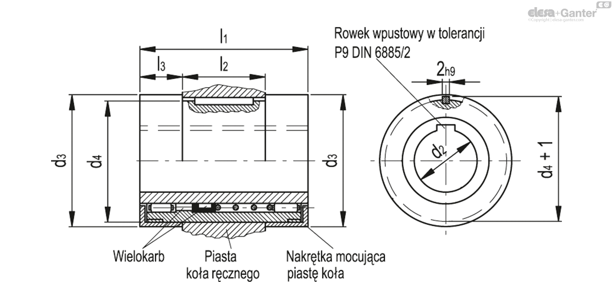 Zestaw sprzęgłowy zasprzęgany "przy odciągnięciu" GN 000.5 z powierzchniami roboczymi ze stali hartowanej, szlifowanej, łożyskowanie igiełkowe, otwór z rowkiem wpustowym zgodny z DIN 6885/2 w tolerancji P9.