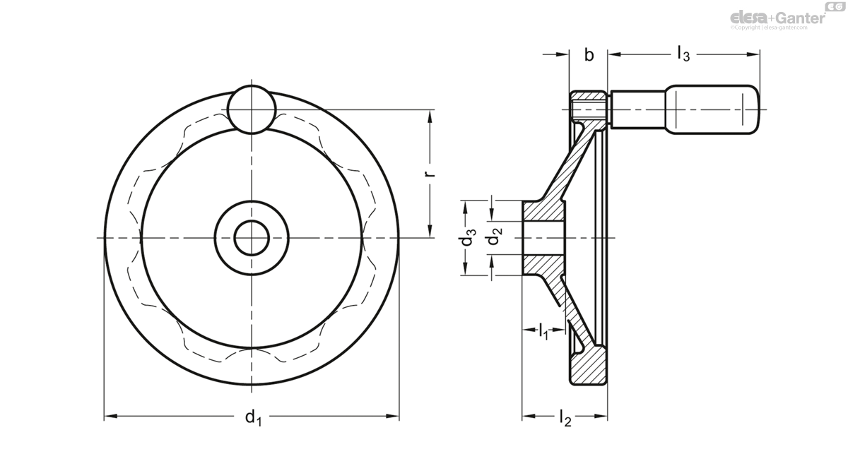 Koło ręczne pełne GN 321-250-B22-R - ELESA+GANTER