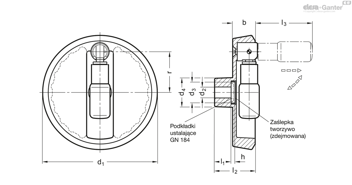 Koło ręczne pełne GN 923.7-200-B18-R-SW - ELESA+GANTER