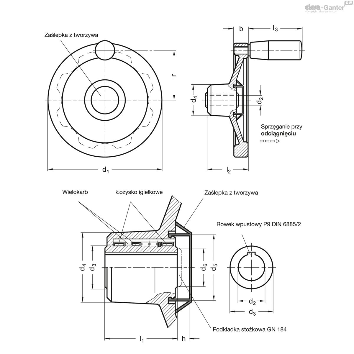 Koło ręczne pełne łożyskowane igiełkowo GN 321.6-160-K12-D - ELESA+GANTER