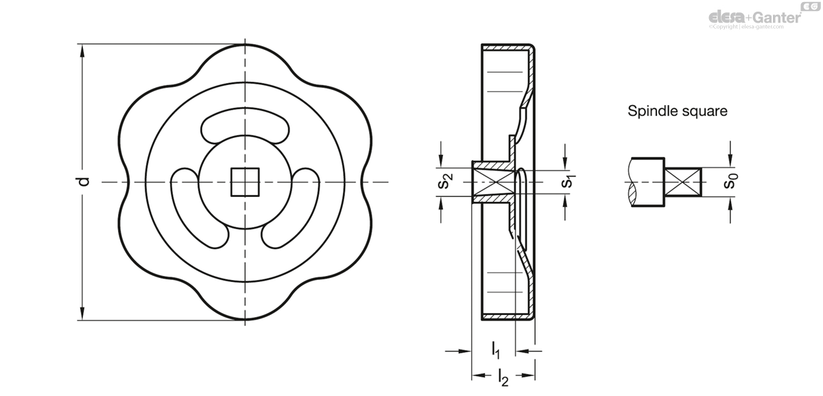 Koło ręczne tłoczone do zaworów GN 227.6-ST-50-V6-ZB - ELESA+GANTER