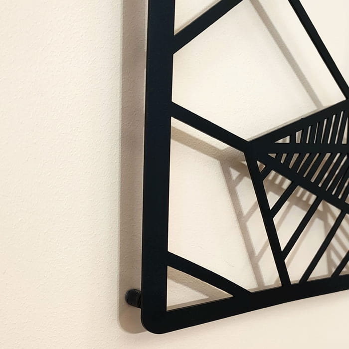 - W każdym narożniku zastosowano gwintowane dystanse dzięki, którym metalowa dekoracja nie jest płaska i prezentuje się przestrzennie.