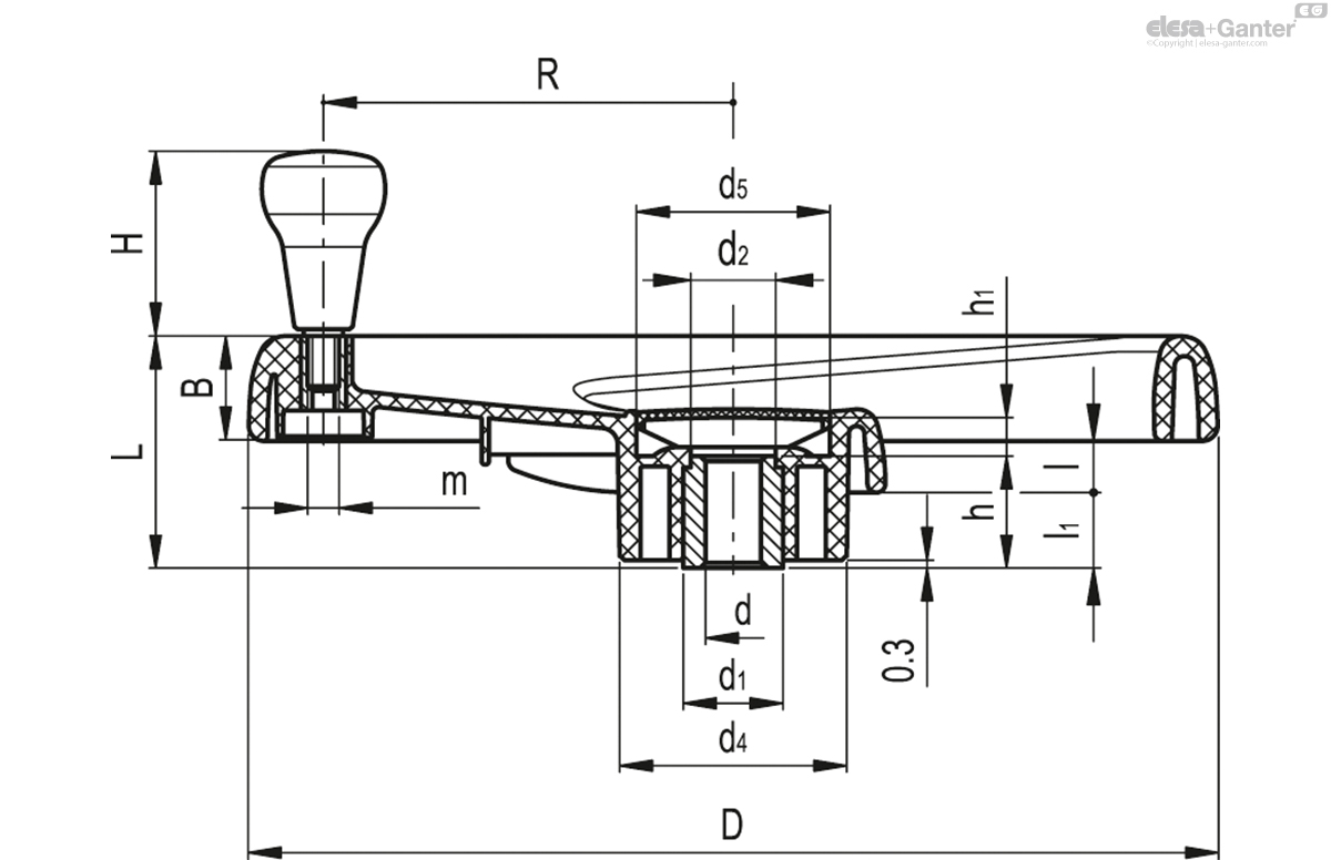 Koło ręczne jednoramienne 204611-C5 EMW.350+IEL-A-20-C5 - ELESA+GANTER