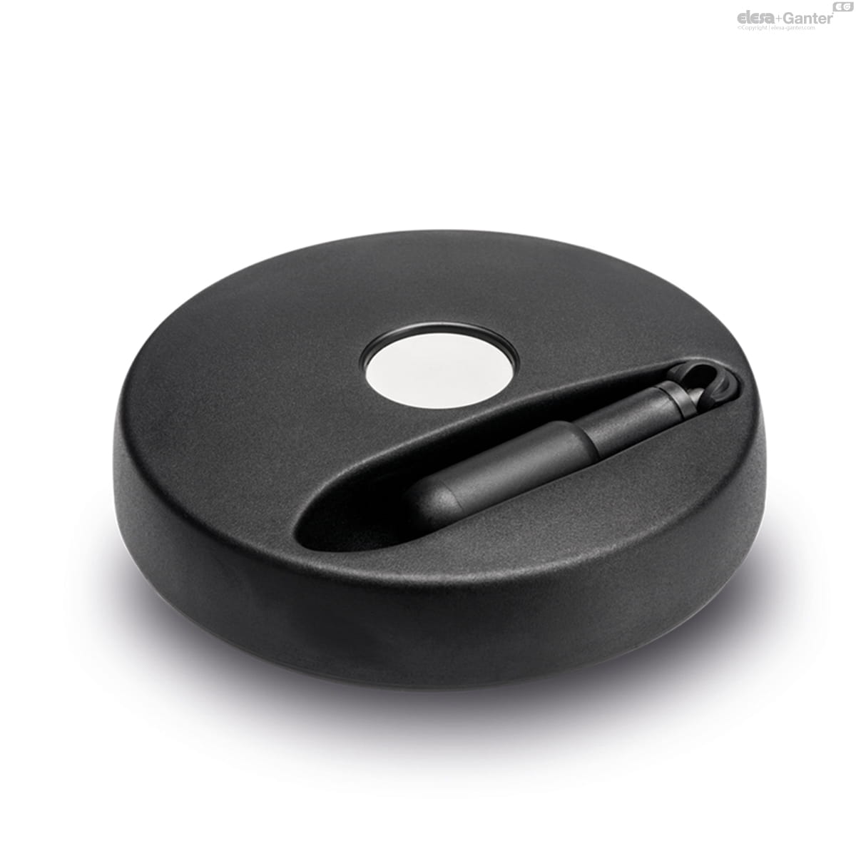 Technopolimer na bazie żywic acetalowych (POM), kolor jasnoszary, montaż na wcisk, może być wyjęta po naciśnięciu na krawędź (oryginalna konstrukcja ELESA).