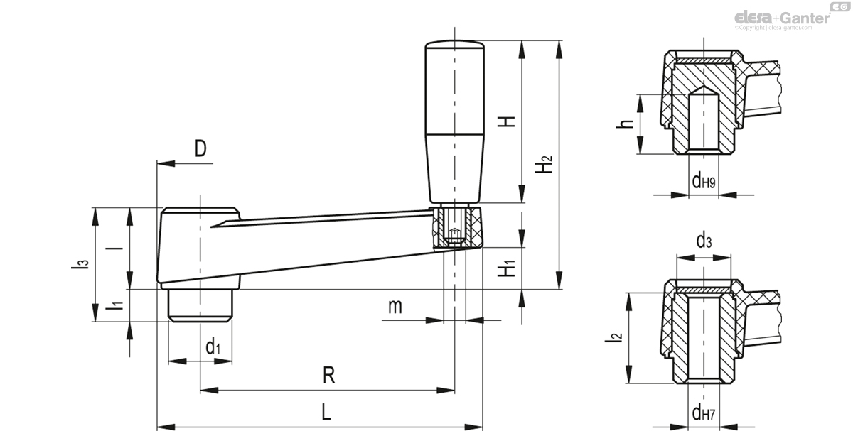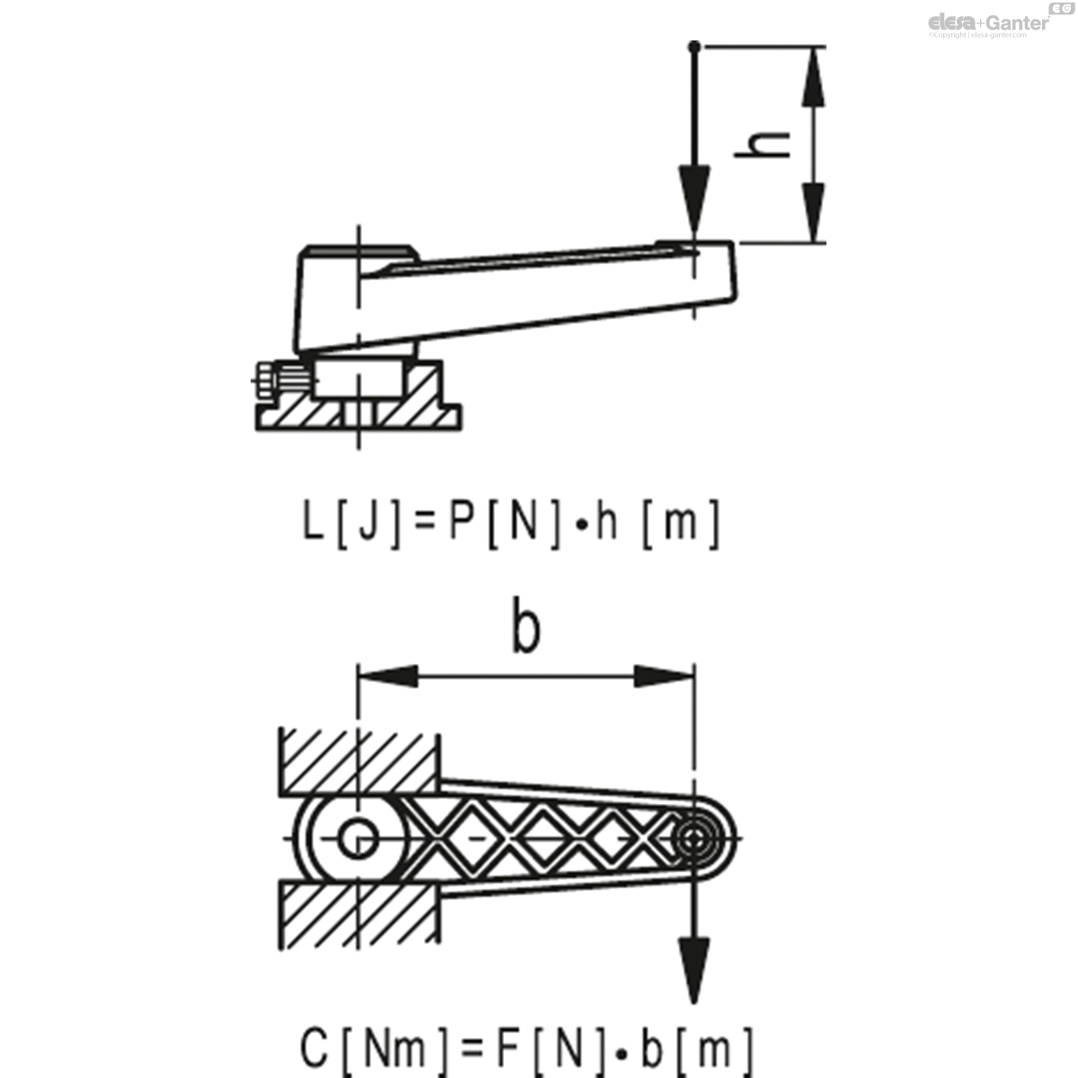 - MT.: z rękojeścią obrotową typ I.780+x z technopolimeru. Stalowa, czerniona piasta z otworem nieprzelotowym w tolerancji H9 lub z otworem przelotowym w tolerancji H7.