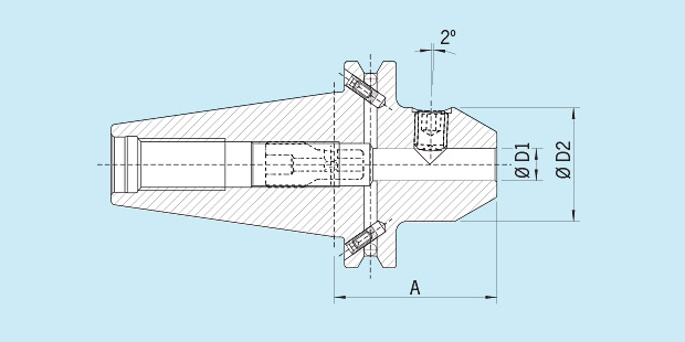 - Oprawka zaciskowa typu Whistle Notch z chwytem DIN 69871 do frezów mocujących z chwytem cylindrycznym i pochyloną powierzchnią czołową, podobnych do DIN 1835-E i DIN 6535-HE.
