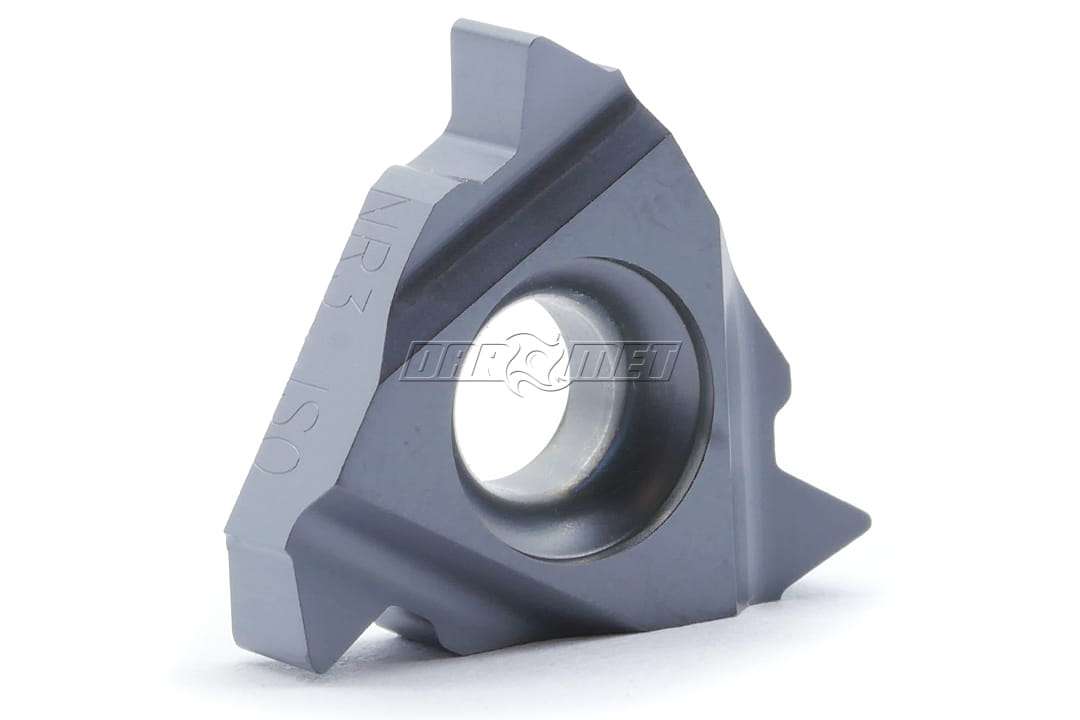 - Płytka 16 IR 3.0 ISO prawa do toczenia gwintów wewnętrznych metrycznych wykonana z gatunku węglika spiekanego DS2136A (pokrytego metodą PVD).