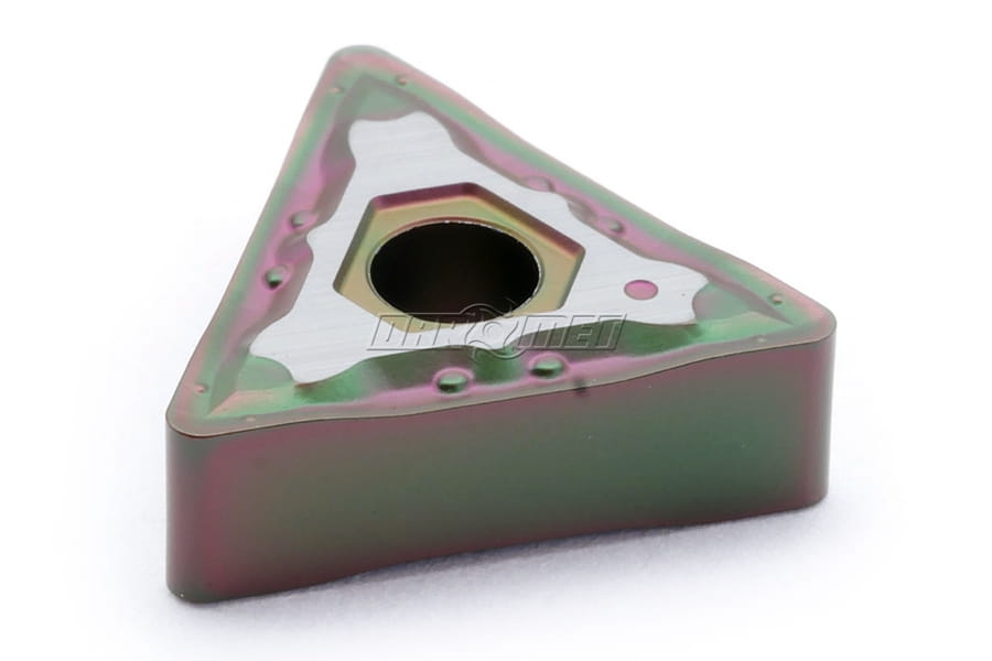 - Płytka tokarska TNMG 160408 z promieniem naroża 0,8 mm wykonana z węglika spiekanego BP35S.