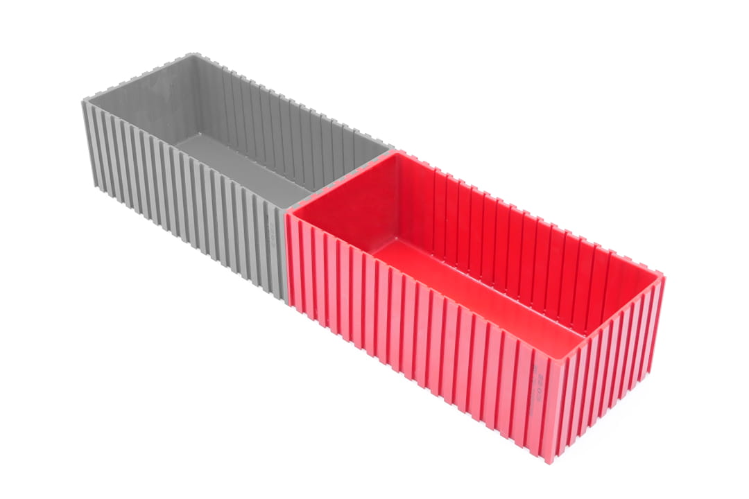 - Dzięki rowkowanym wczepom pudełka można dowolnie łączyć, składać i tworzyć większe zespoły.