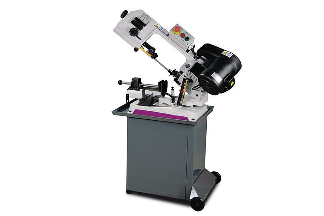 - Piła taśmowa wyposażona jest w imadło z szybkim zaciskiem, co pozwala na sprawne mocowanie obrabianych materiałów.
