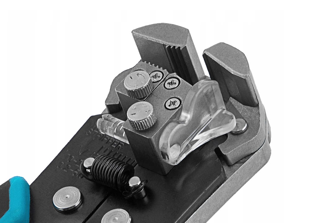 - Szczypce posiadają szeroki zakres ustawień, co umożliwia pracę z różnymi rozmiarami przewodów elektrycznych i zdejmowanie izolacji bez uszkadzania wewnętrznych żył.