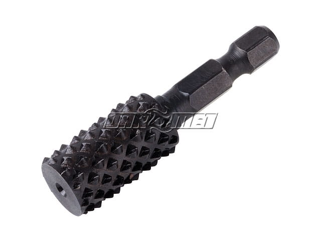 - Trzpień na chwyt sześciokątny umożliwia stosowanie zdzieraka w elektronarzędziach np. w wiertarkach elektrycznych lub w wiertarko-wkrętarkach akumulatorowych.