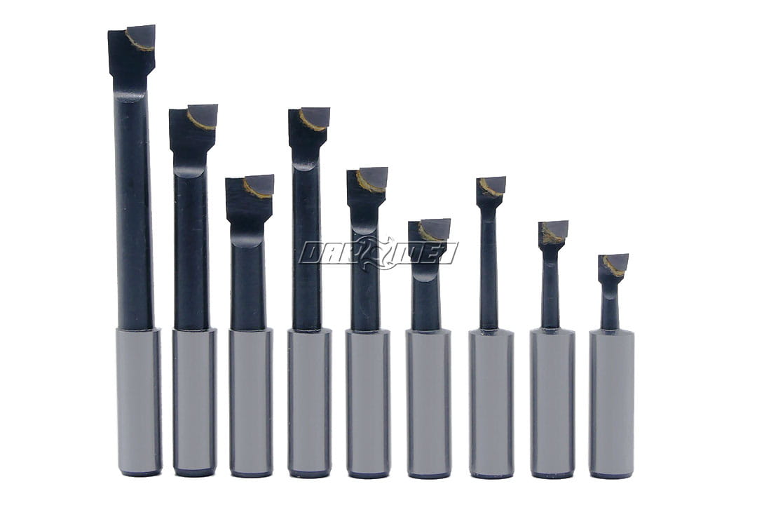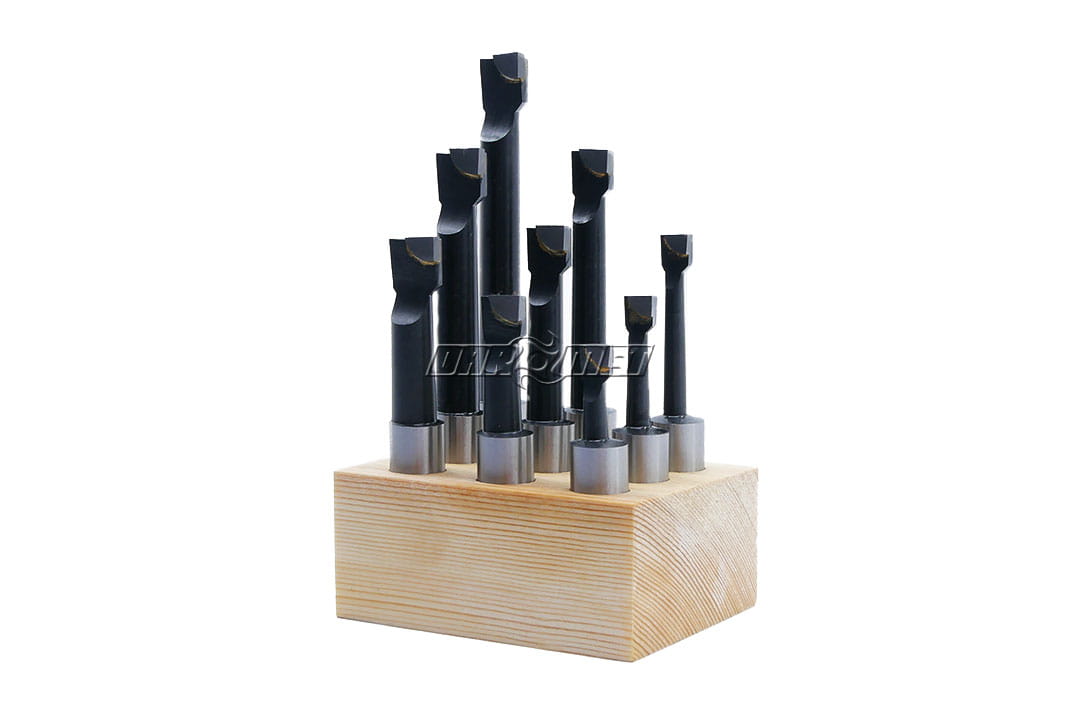 - Zestaw dziewięciu lewych wytaczaków o długościach od 58 do 115 mm.