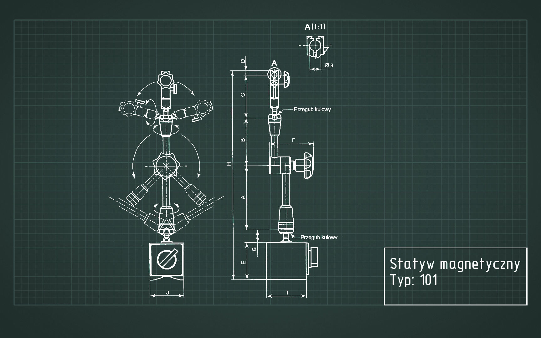 - Statyw magnetyczny przegubowy z zaciskiem mechanicznym przeznaczony do czujników zegarowych.