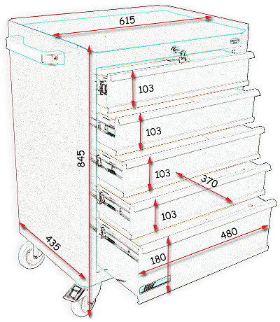 Szafka narzędziowa z 5 szufladami - FAST SERVICE (N-1-02-02-P)