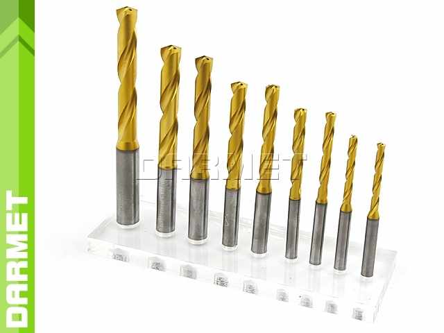 - Zewnętrzna powłoka z TiN pełni funkcję wskaźnika zużycia, co ułatwia monitorowanie stanu mniejszych wierteł