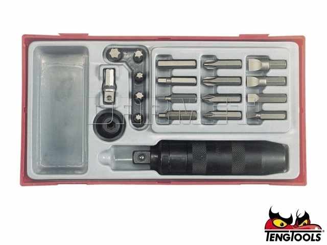 - Dostarczony w pojemniku z tworzywa z odłączaną pokrywą pasującą do skrzynek i wózków narzędziowych Teng Tools