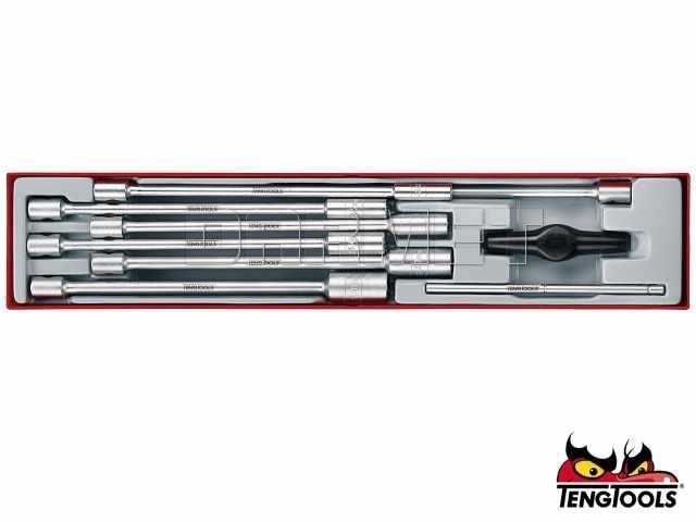 - Zestaw bardzo długich kluczy nasadowych, z chwytem 3/8" i otworem pod pręt poprzeczny do pokręcania