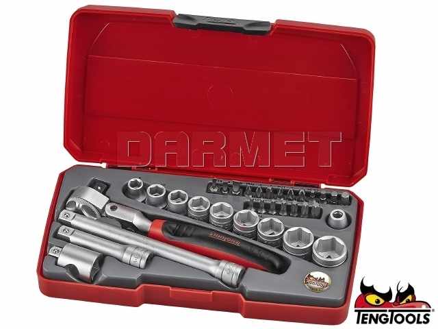Zestaw kluczy nasadowych sześciokątnych z chwytem kwadratowym 3/8", T3834S - 34 szt. - TENGTOOLS (18690-1104)