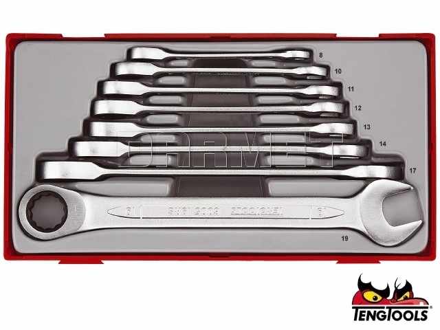 Zestaw kluczy płasko-oczkowych z zapadką, 8 szt. - TENGTOOLS (16672-0102)