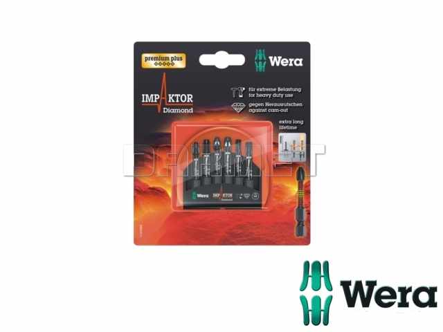 - Wykorzystanie w pełni właściwości materiałowych w połączeniu ze specjalną geometrią, która spełnia szczególnie wysokie wymagania, umożliwia narzędziom Impaktor firmy Wera uzyskanie ponadprzeciętnej żywotności; przeznaczony specjalnie do pracy z wkrętarkami udarowymi; powłoka diamentowa zapewnia zwiększone tarcie, ograniczając ryzyko wyślizgiwania się narzędzia z gniazda wkrętu