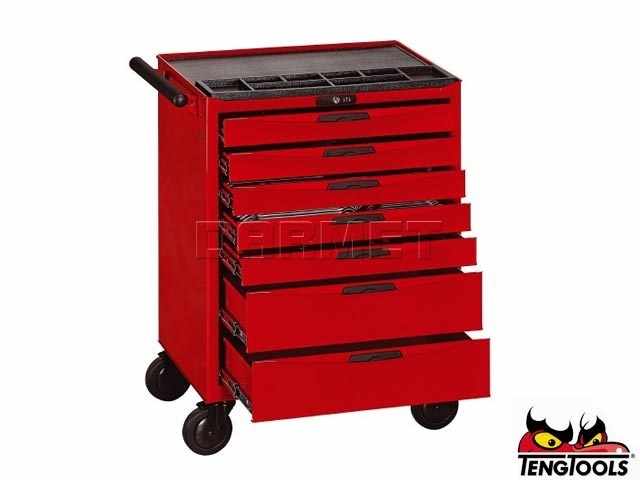 - Zestaw 333 narzędzi umieszczonych w pojemnikach Teng Tools z wyfrezowanym wkładem z dwukolorowego tworzywa piankowego EVA. Dostarczany w wózku narzędziowym TCW807N