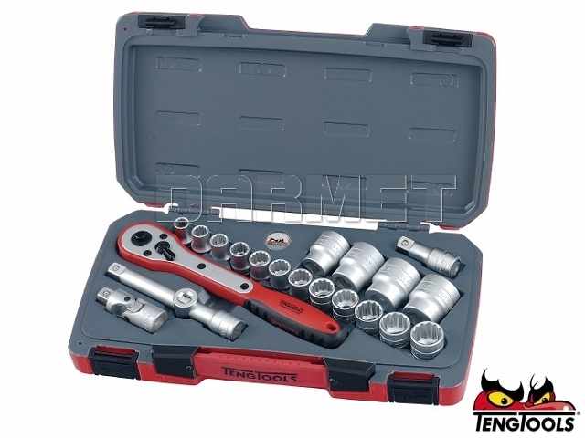 Zestaw nasadek dwunastokątnych z chwytem kwadratowym 1/2", T1221- 21 szt. - TENGTOOLS (16724-0100)