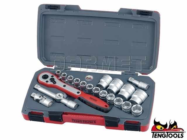 Zestaw nasadek sześciokątnych z chwytem kwadratowym 1/2", T1221-6 - 21 szt. - TENGTOOLS (16724-0209)