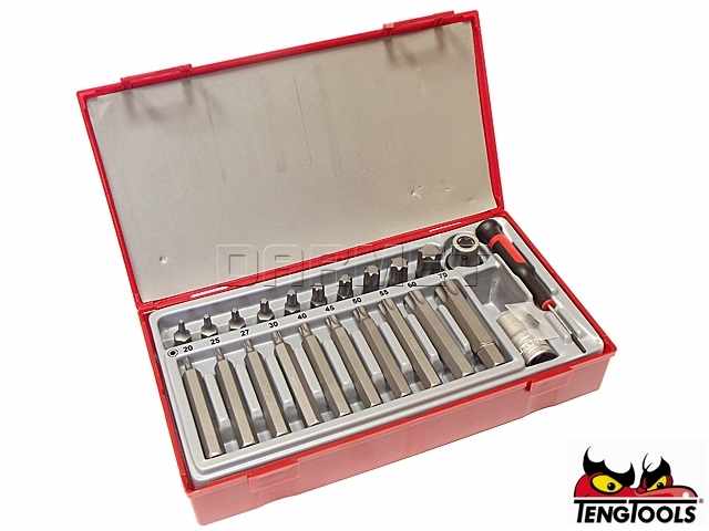 - Zestaw składający sie z 20 grotów wkrętakowych (krótkich i długich) do gniazd sześciokatnych z systemem TX